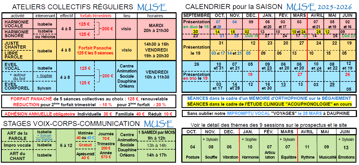 - L’atelier HARMONIE VOCALE ET SONORE sera le lieu d’expérimentation-recherche-formation :