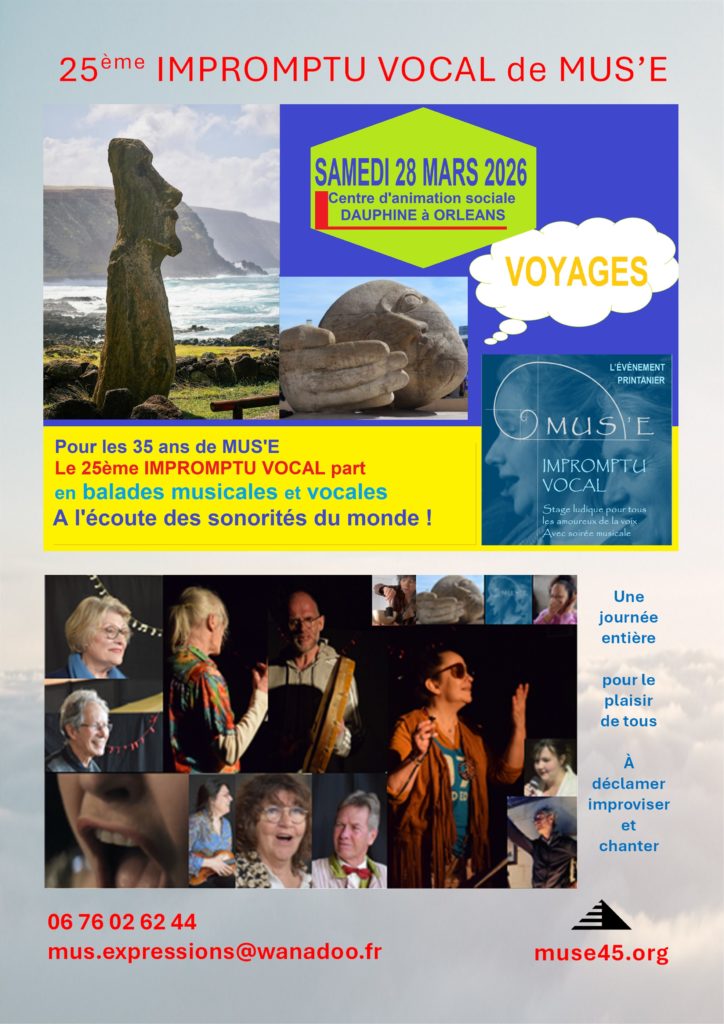 Depuis mars 2001, MUS’E organise chaque printemps, une JOURNEE VOIX pour tous les curieux de la voix et de ses multiples expressions : un petit Air de printemps à Orléans !