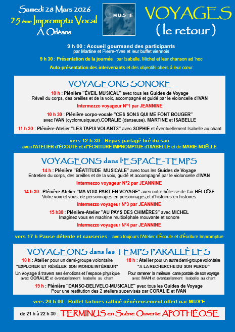 Après le 24ème Impromptu Vocal qui nous a emmené en voyages (Voix’âge), nous repartons pour